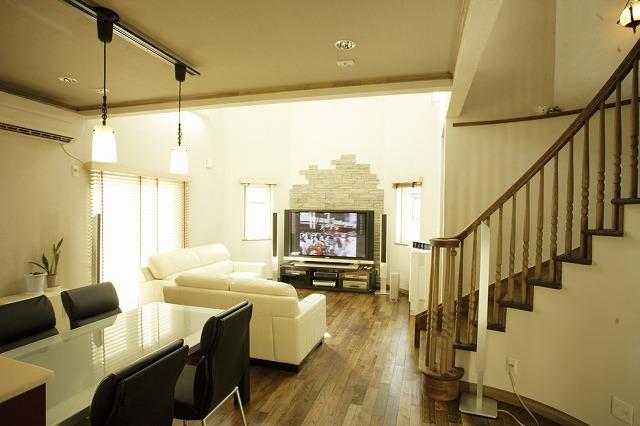 S様邸 左右の切妻屋根と台形の壁が特徴の外観です。塗壁の外壁や、ブリックタイルで南欧風にしました。内部は、クリフロアや薄いグレーのドアで、アンティークでモノトーンな感じに仕上げました。 大きな吹抜けと、輸入バスタブの広々浴室にこだわったお客様です。 外断熱でオール電化だから、内部の塗壁とムク材で更に、居心地のいい家です。 ギャラリー 大きな吹抜けのリビング キッチンのワインレッドがポイントのダイニングキッチン 広々浴室もモノトーンな感じで