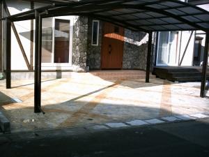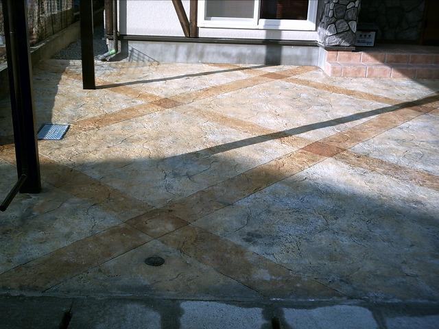 駐車スペースはコンクリートに色を付けて、自然石風に仕上げました。