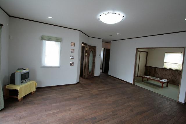 オークフロアに自然塗料で色を付けてます、自然のツヤが出てきますし