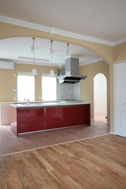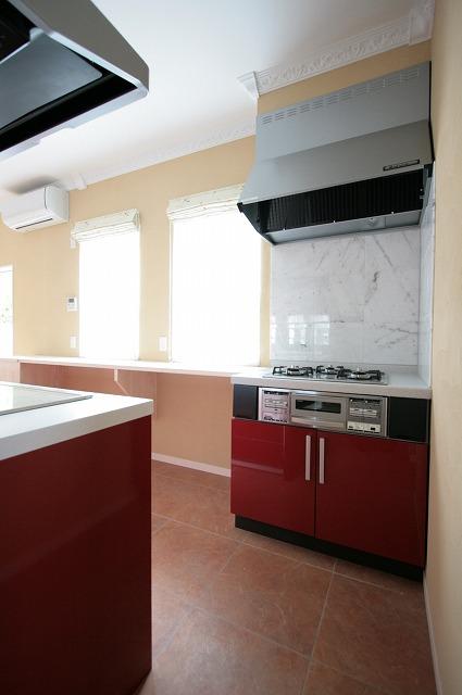 T様邸 4 ホワイトベースの空間に、レッドのキッチンが映えてますねぇ アイランドタイプでキッチンの周りをグルット回れて使い易いですよ^^ お客様の要望でコンロをもう一台付けています^^ 背面のカウンターやカップボードなど収納もタップリです^^ ギャラリー T様こだわりのもう一台のコンロです^^ 背面のカウンターは色々使えて重宝しますよ^^
