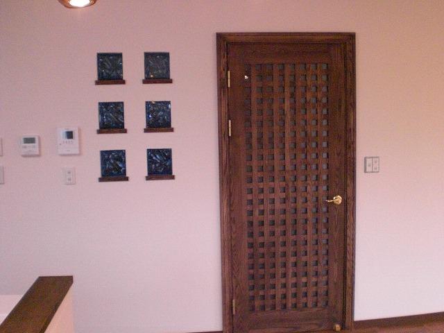 TR様邸 2 リビングはアンティークチェスナット(クリ)フロアに自然素材の塗り壁 で快適空間になってますよ^^天井の化粧縁や照明の雰囲気がいいですねぇ ギャラリー 輸入の無垢ドアですがモダンに合ってますねぇ、隣のガラスブロックがポイントになってます ガラスブロックのブルーと塗り壁の風合いが良い感じです ダイニングの照明とリビングの照明もバッチリです、空間のトータルコーディネートを考えての提案をしてますよぉ〜^^