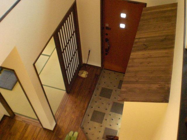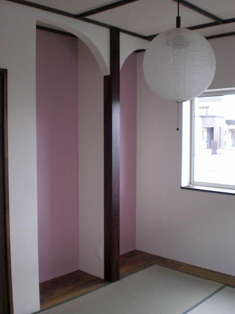 TR様邸 3 和室もモダンにこだわりました^^ 床の間スペースや、入り口の建具、天井などなど^^ 2Fホールも・・・ 吹き抜けから見下ろす玄関収納が屋根付きに なってますよぉ〜^^ ギャラリー 床の間スペースです、奥の壁をポイントでパープルの塗り壁です^^ 2Fホールには書斎スペースも作っています 2Fホールからの玄関と和室の入り口です 玄関収納の上は埃がたまるので屋根風に パインフロアで造りました^^