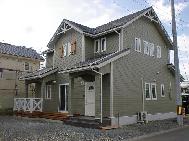 モスグリーンの外壁が素敵なアメリカンスタイルの外観で