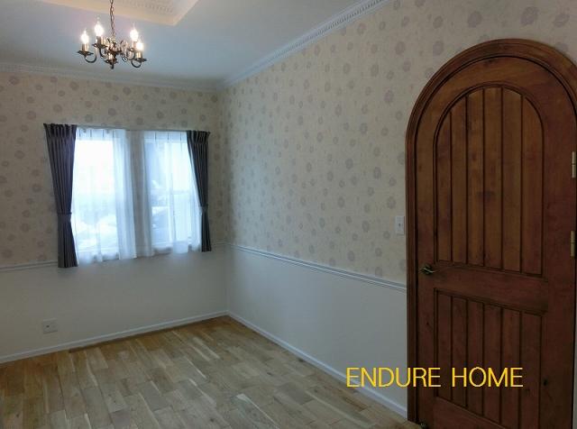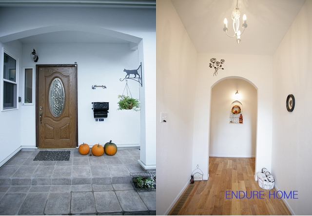 盛岡市 I 様邸 ・ ・ ・ No.1 ギャラリー 輸入の玄関ドアが目を引く素敵なポーチ 玄関ホールも広々と設け おしゃれに飾ったニッチが目を引きます✿ 6人掛けのテーブルを置ける 広々としたダイニングスペース リビングには優美なカーブ階段☆彡 寝室の扉には無垢の扉を採用 クロスも花柄にし落ち着きのある エレガンスな雰囲気に*