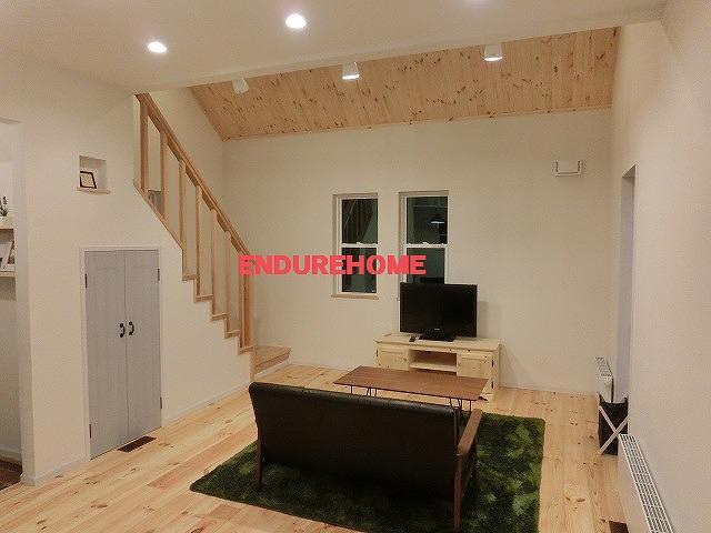 滝沢市 S様邸・・No.1 建坪約30坪のコンパクトに収まった可愛いお家★ 可愛いだけじゃありません!! 断熱は、外断熱+羊毛断熱のW断熱。 暖房には、ハイブリット給湯機のパネルヒーターを採用し 一年中快適にお過ごしいただけます(^^)/ ギャラリー 無垢フロアーはクリアで塗装し ナチュラルで温かみあるリビング キッチンはマスタードカラーの壁紙をアクセントに床は10㎝角のタイルを一枚一枚貼りました☆ 洗面は手作りで造り、タイルもオーナー様お好みの物をチョイスしていただきました♪