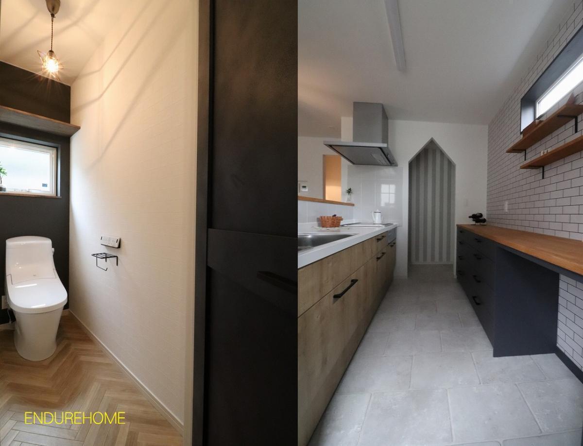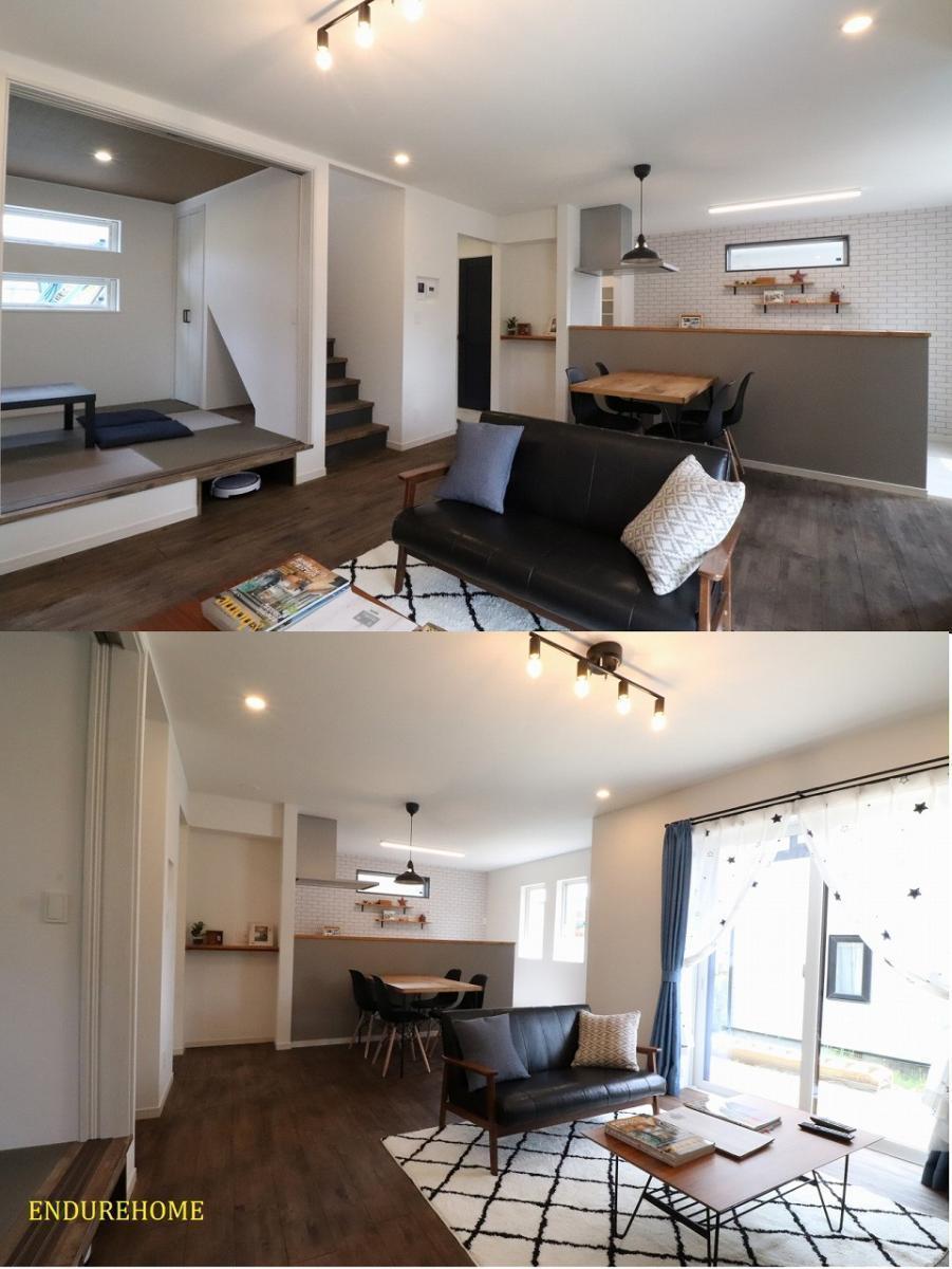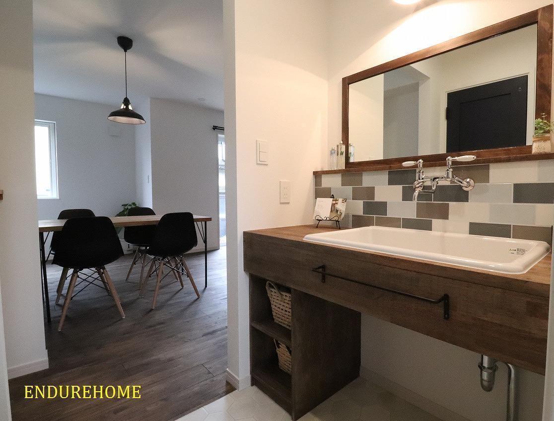 盛岡市 J様邸 ギャラリー LDKの床はラバーウッドフロア、自然塗料で塗装し仕上げています*和室は小上がりになっているので、腰かけてテレビを見ることも◎ ご要望でルンバのお家も作りました☆ ダイニングのすぐそばにある洗面台 朝の身支度中も子どもたちの姿をすぐに確認することができます♪ タイルもお好きなものをお選びいただけます⌒* トイレやキッチンのクロスもお好きなものをお選びいただけます。 オーダーで造った食器棚は、リクシルのキッチンとお揃いのデザインで、引き出しにはソフトクローズ機能もつき使い勝手も抜群◎